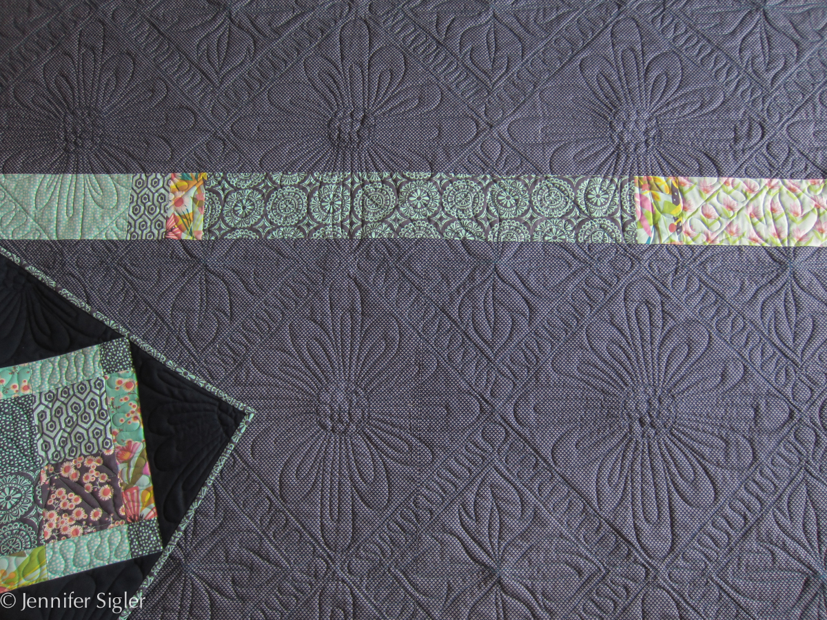 Solid fabric really shows off quilting designs. And, it makes mistakes very obvious.