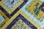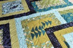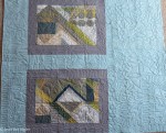 Here’s another group project that turned out charmingly well. Several quilters from my church quilting group joined forces to make stacked blocks. I got the idea from Erica Jackman’s blog Kitchen Table Quilting. The idea is to make the blocks, cut them into quarters, and then rearrange them to look like they’ve been stacked. We decided the stacked effect might be more obvious on a larger quilt, but we’re still delighted with the result.