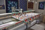 This is my first pantograph–an all-over design created by following a printed pattern with the laser guide on the longarm quilting machine. I liked that it went fairly fast; without any design decisions to make, I could keep quickly moving along. However, designing is half the fun, so after a few rows of roses, I was thankful for my audio book.