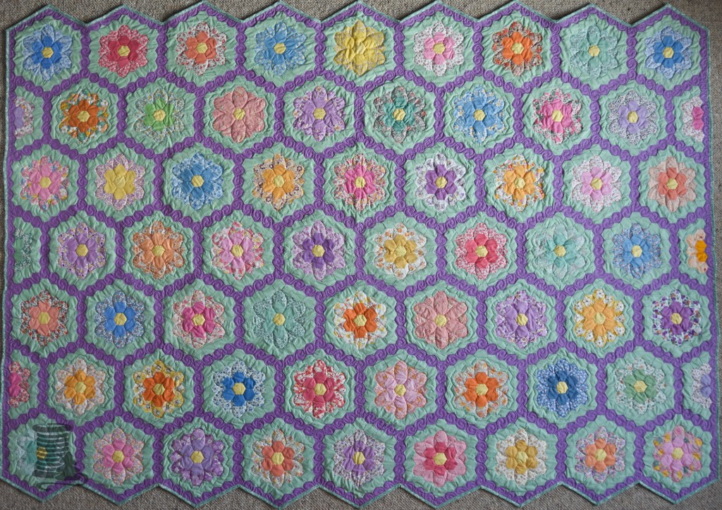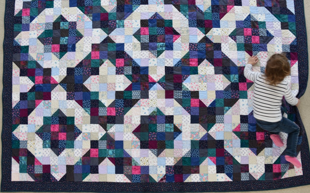 Color value quilt donated to Longmont Quilt GuildColorado Grandmother’s garden, completed from a rescued, hand-stitched top
